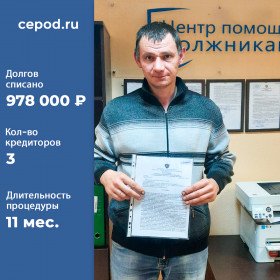 Списано долгов на 978 000р. за 11 месяцев. Кол-во кредиторов - 3 шт.